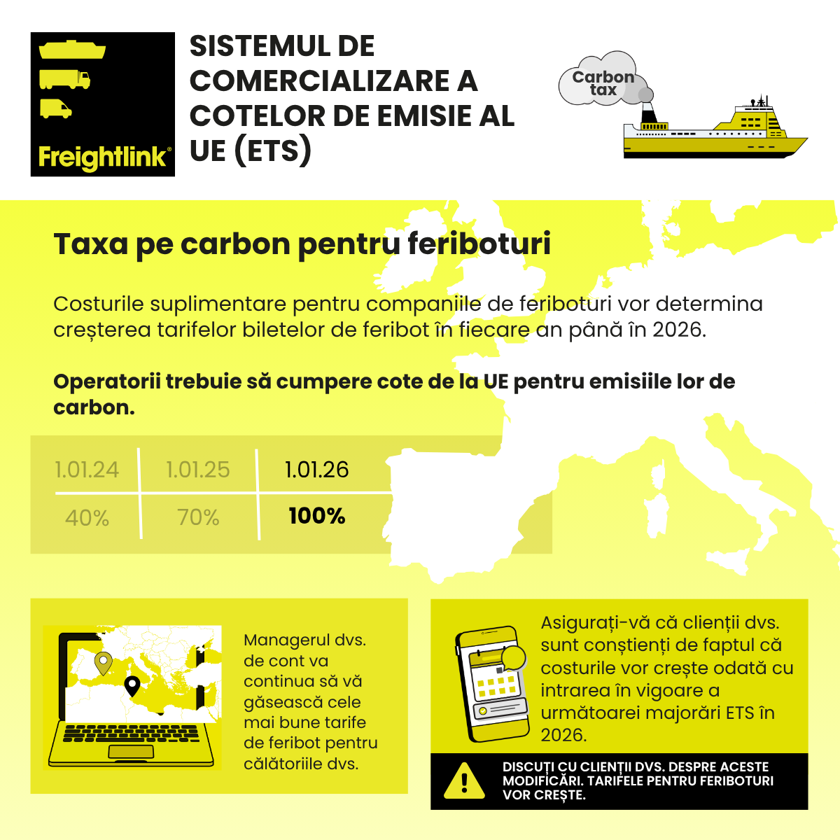 Introducerea noului ETS al UE pentru transportul maritim face parte din eforturile mai ample ale UE de a reduce emisiile de gaze cu efect de seră în toate industriile. În cadrul noului sistem, operatorii de feriboturi vor trebui să reducă emisiile de CO2 în fiecare an pentru navele cu o tonaj brut de peste 5000 tone.